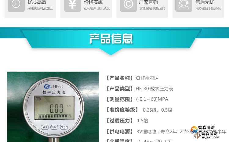 數(shù)字壓力表量程0-20MPa,精度0.4級測試消火栓用30. 細水霧末端試水裝置壓力表量程:0MPa~0.6MPa;精度:0.4級安裝在系統(tǒng)管網(wǎng)或分區(qū)管網(wǎng)的末端,檢驗系統(tǒng)啟動。