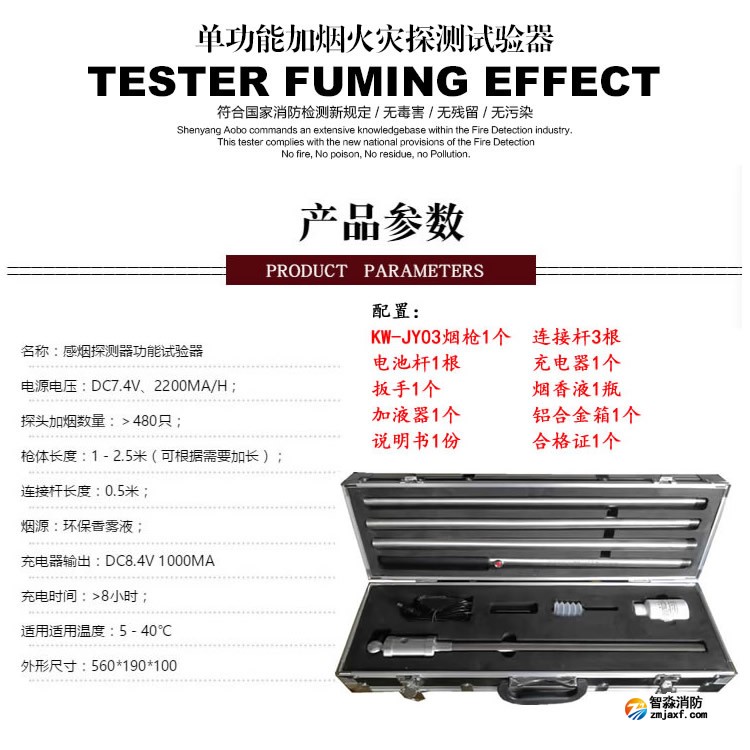 ZM-Y感煙探測器功能試驗器是4+2全功能火災探測器試驗器的子產品,利用物理學和化學原理控制和轉換技術,采用環保型霧香液通過電子能量轉換,將液體釋放哦顆粒煙霧,取代并淘汰了傳統的棒香發煙方式,發出的煙霧無明火、無煙灰、無煙油,對探頭無二次污染。以其結構緊湊,外形精美,攜帶方便,組裝簡單,操作靈活,槍體輕便,性價比高等受到廣大用戶的青睞。全結構為不銹鋼設計,鋁合金箱包裝,可對感煙類(各種型號的離子、光電及復合類煙感探測器)火災探測器進行維護、檢測、調試、驗收、靈敏度試驗。是棗莊消防檢測、消防工程及使用火災報警系統的單位輔助工具。